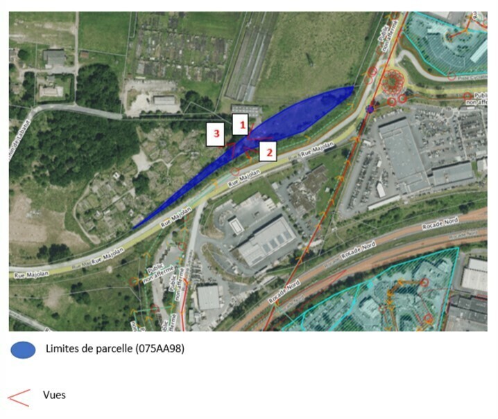 Sensibilité environnementale : Zone humide dans la partie au Nord. Favoriser les plantations au Sud du site.
