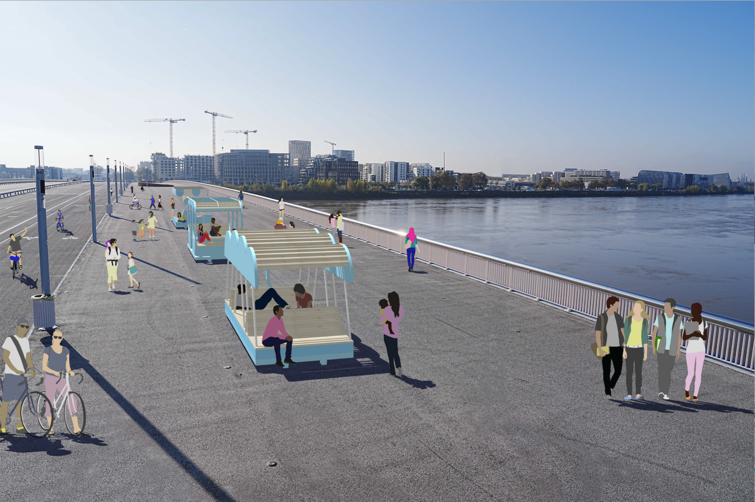 Pour répondre au besoin d’ombre et de fraîcheur en milieu urbain, le projet propose l’installation d’Espaces Publics Ombragés Portatifs : trois pergolas poétiques et ludiques offrant aux citoyens des lieux de rencontre et de repos ombragés. Ces dispositifs mobiles seraient déplacés et expérimentés sur différents espaces publics de la Métropole pour animer l'espace public avec un paysage changeant et un confort climatique renforcé.