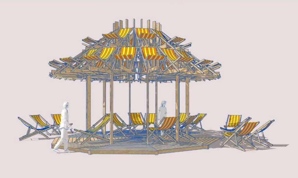 Le projet est une installation ludique et écoresponsable qui invite les habitants à se détendre à l'ombre, sous une constellation de transats soutenus par une structure en bois. Fabriquée à partir de bois de réemploi, cette installation mobile pourra être déployée dans divers endroits de la Métropole. Elle vise à créer du lien social en offrant un espace de repos et d'échange autour des enjeux écologiques.