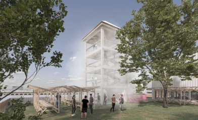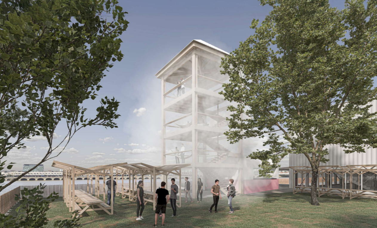 La Tour d'Eau est pensée comme un signal, un havre, un observatoire, le phare de la rive droite de Bordeaux. Le projet vise à offrir de la fraîcheur et créer un espace de détente accessible pendant les périodes de chaleur. Comment ? Grâce à la construction d'une tour avec un système de rafraichissement et de mobilier de détente, offrant une vue sur la Garonne. L'intension est de renforcer le lien social en rassemblant les citoyens autour d’activités culturelles, pédagogiques et artistiques, tout en sensibilisant aux enjeux environnementaux, au cœur de cet aménagement.